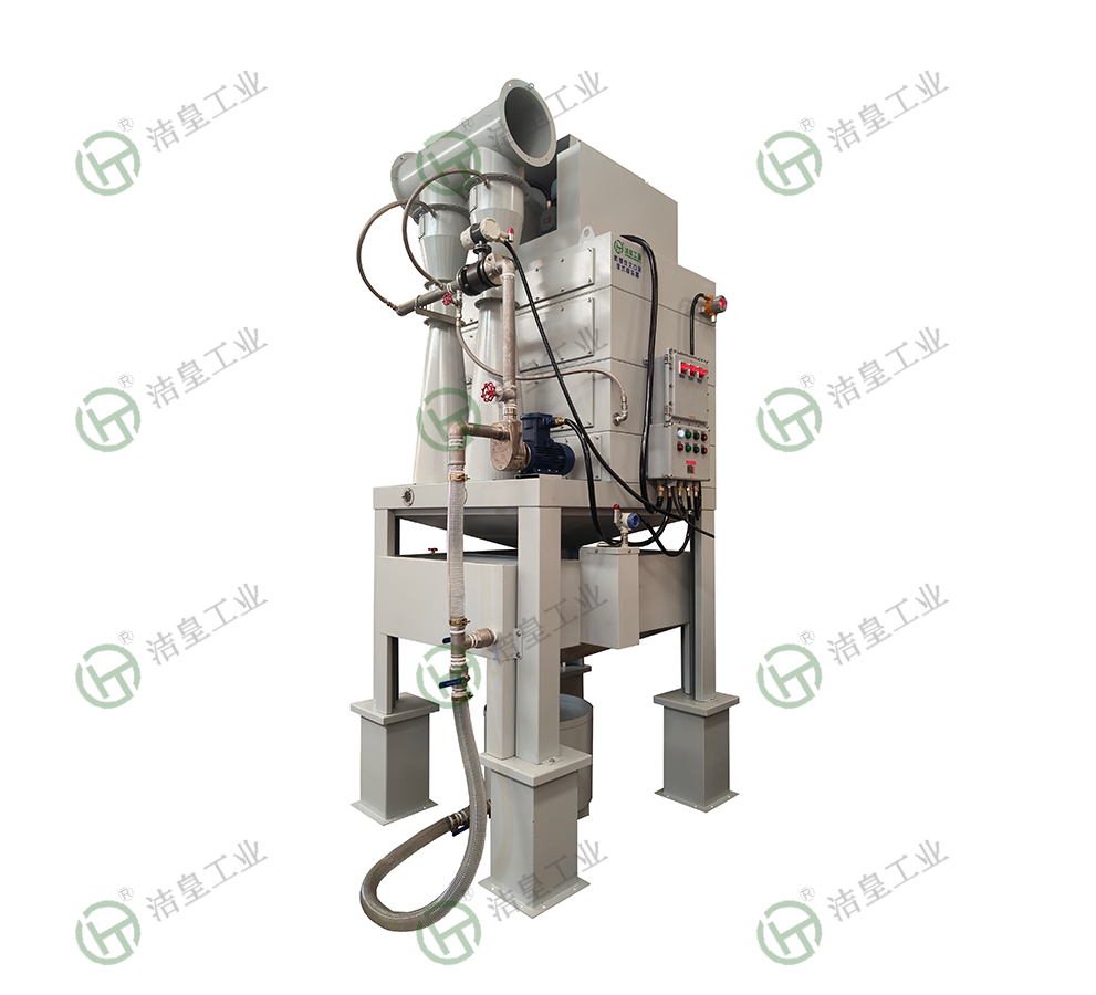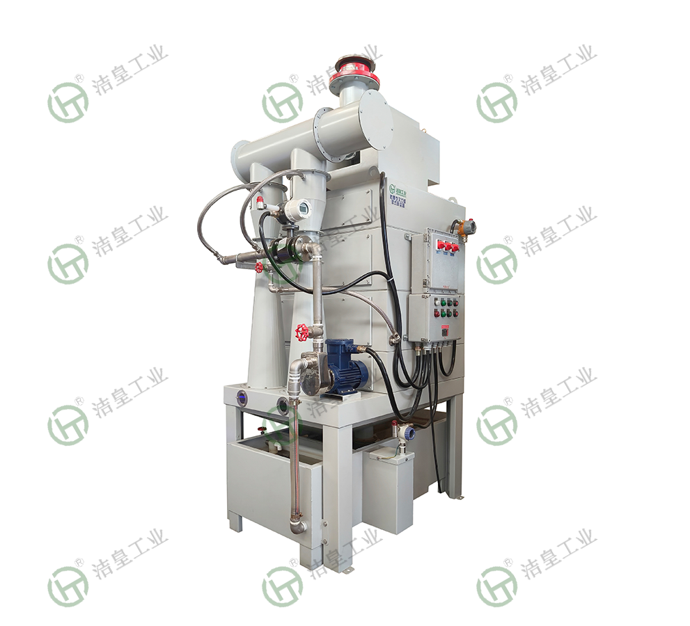 該機(jī)利用(yòng)文丘裏原理和氣相負壓使得噴淋液相形(xíng)成,將吸入的煙霧,塵埃和廢氣被水霧、水(shuǐ)漫捕捉吸附形成大液滴落入沉澱池,部分細沫通(tōng)過初過濾、高效過濾除沫器浸潤吸附回落沉(chén)澱池。沉澱池沉澱水供給循環泵循環(huán)噴淋,周而複始,水位由液位器控(kòng)製,進水管自動補給運作所(suǒ)蒸發的水汽損失。沉澱池底部的淤泥或碎屑可通過撈渣(zhā)口人工清理或(huò)鬥式水箱底部球閥(fá)排出。該機過濾(lǜ)單元無(wú)堵塞,高沉(chén)降分離效率,排出空氣符(fú)合標準。該機模塊化設計組裝(zhuāng),零件噴塑處理,工況需要亦可不鏽鋼製(zhì)作。粉塵濃度較大時,應加裝旋風濕式除塵器使(shǐ)用,可減(jiǎn)輕過濾器壓力和損耗(hào),更好地保證性能。